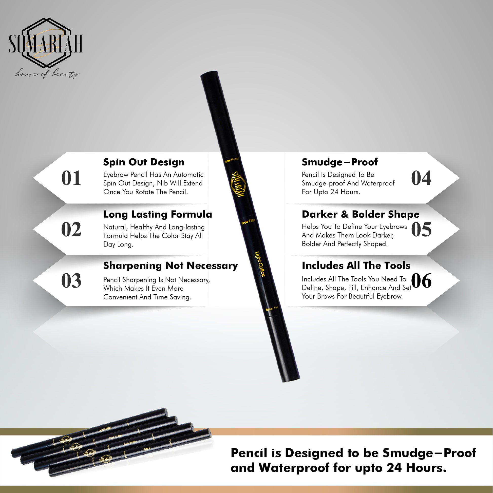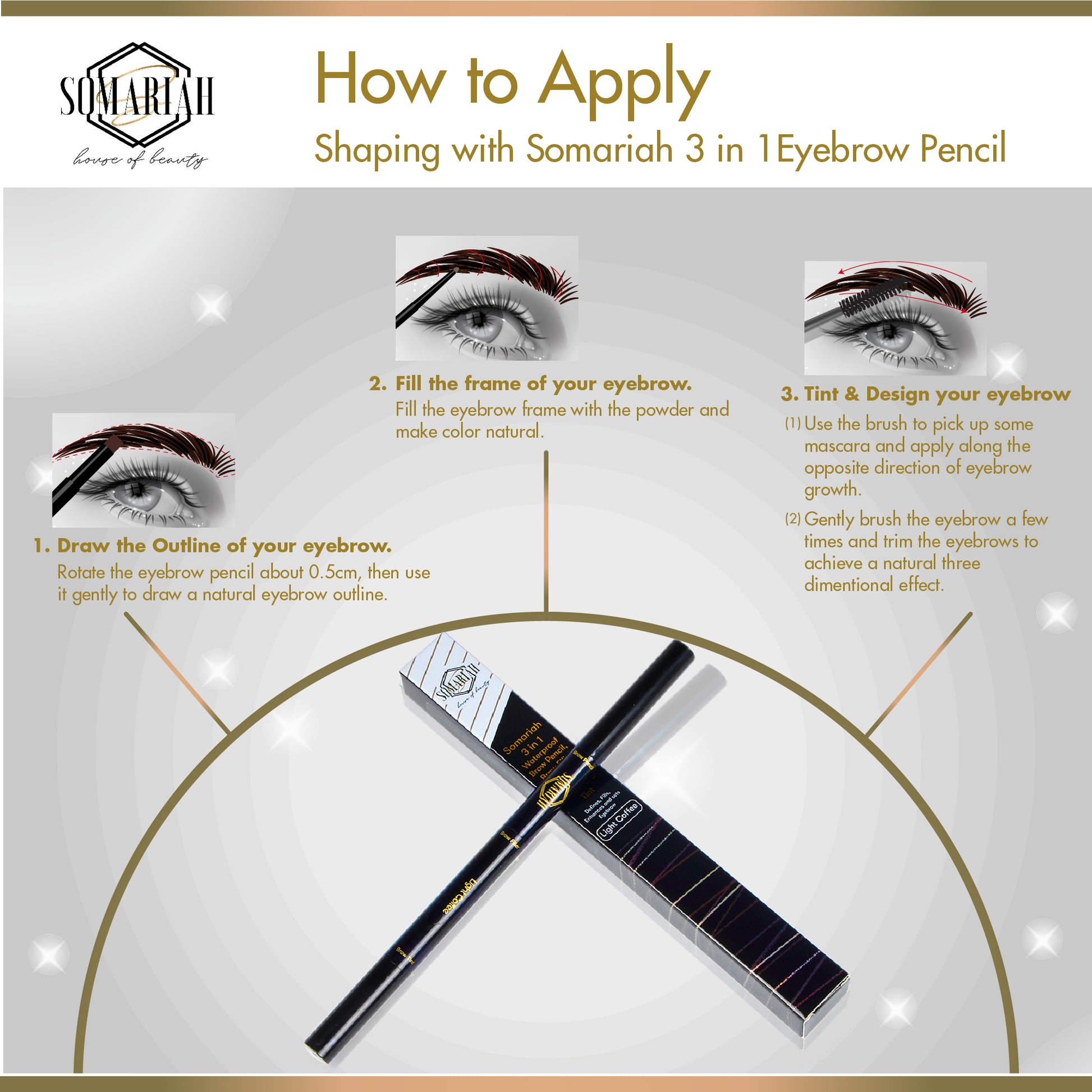 Somariah 3 in 1 Waterproof Eyebrow Pencil