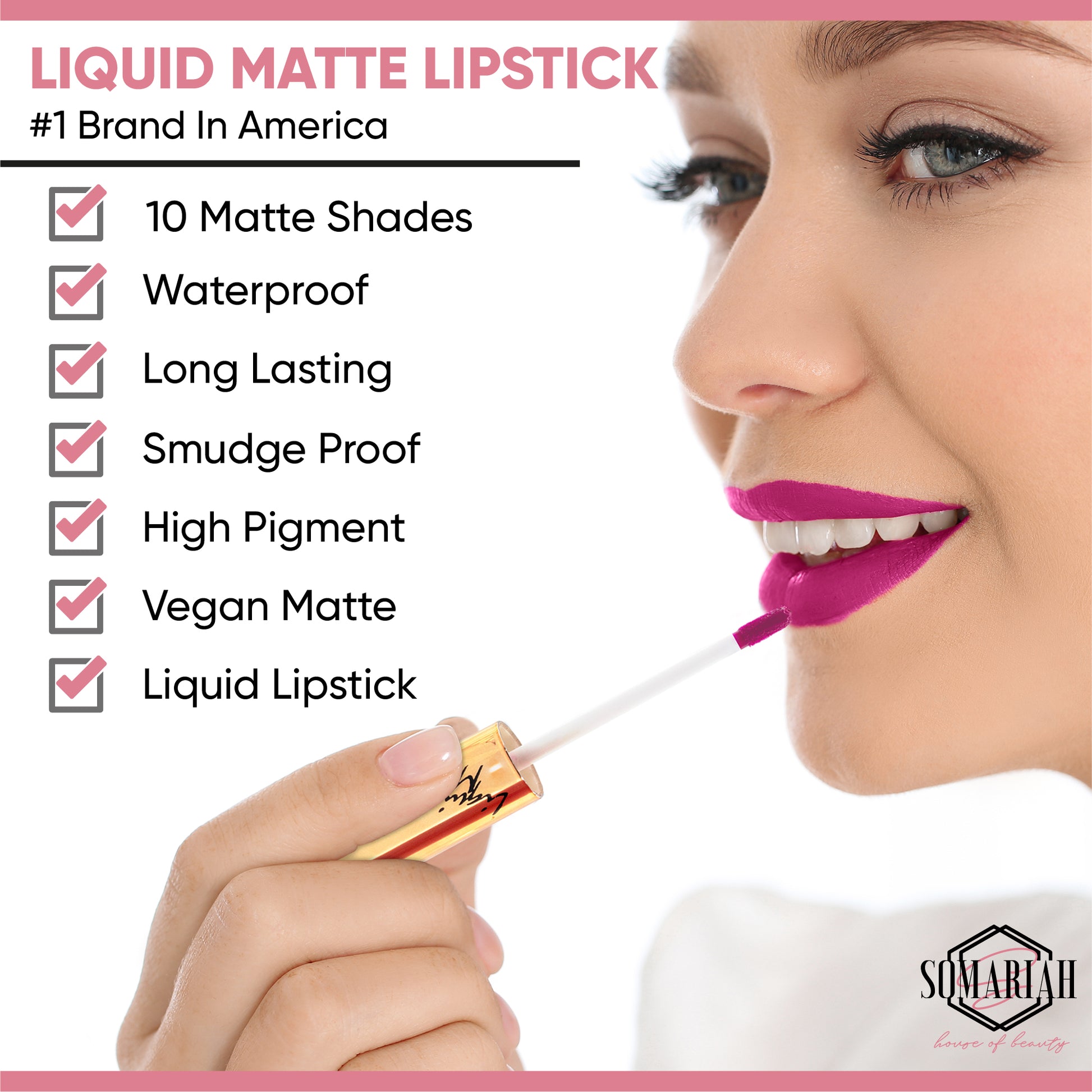 SomariahLiquid Matte Lipstick – 10 Shades Liquid Lipstick for Women - Waterproof Lip Stick with Long-Lasting Formula – Moisturizing and Comfortable – Smooth Finish with High-Precision Applicator